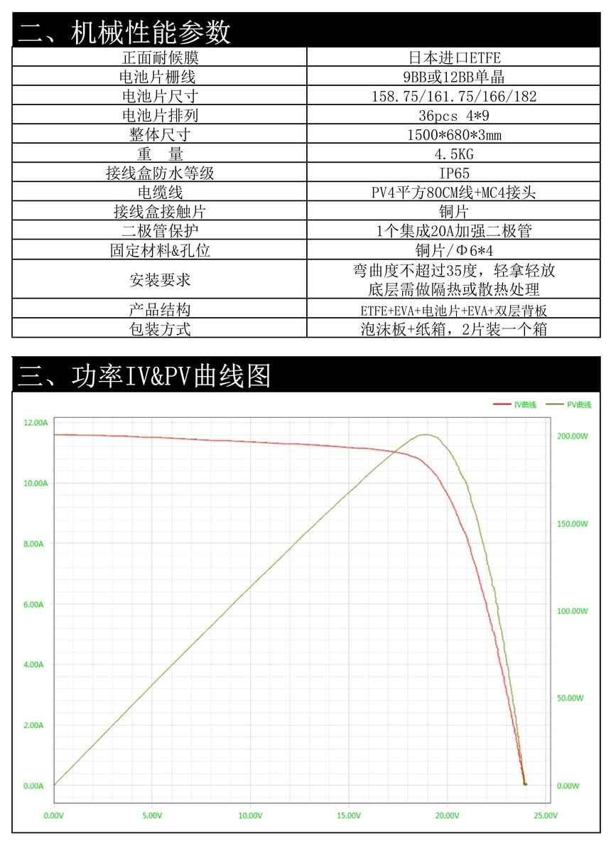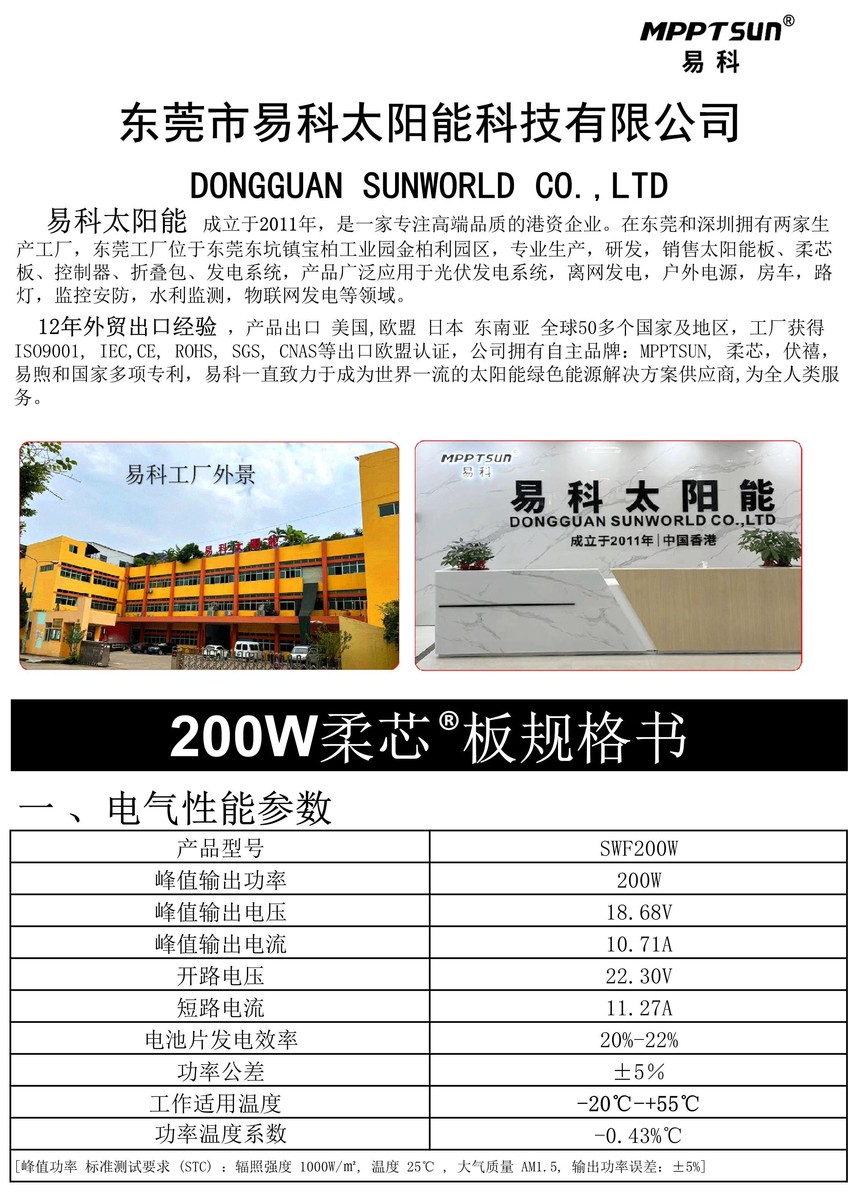 易科200W ETFE 太阳能板规格书